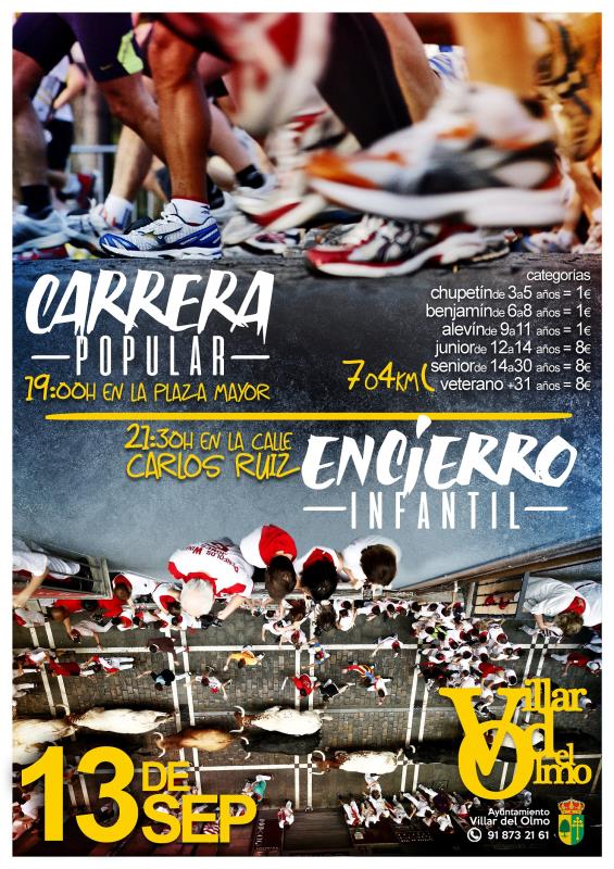 Prepárate a correr porque el próximo 13 de septiembre lo vas a hacer. A las 19 horas, te esperamos en la ya tradicional carrera popular, con competiciones para todas las categorías, y después, los más pequeños sentirán la emoción en un encierro infantil por la calle Carlos Ruiz